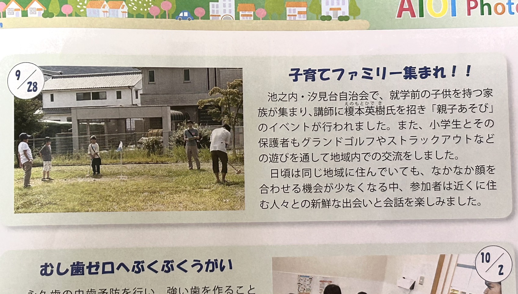 9月28日(日)相生市池之内・汐見台自治会主催で地域イベントが実施されました。同じ地域に住みながらも、顔を合わせる機会がなかったり、名前を知らなかったりという現状。防犯、防災という面からも地域住民同士が『知り合う』きっかけ作りをしたいと、このイベントが企画されました。